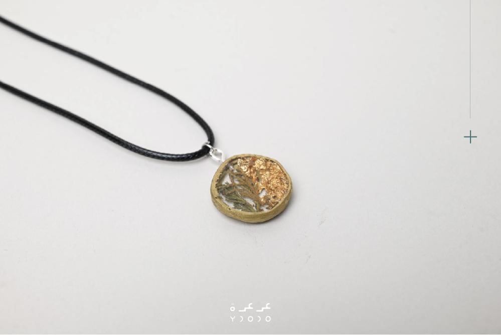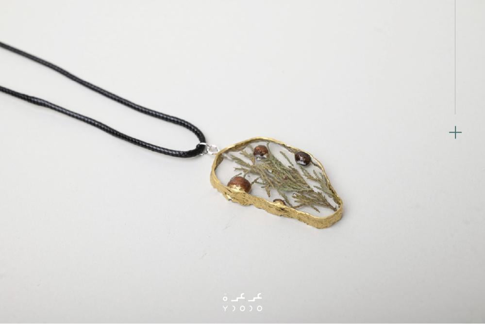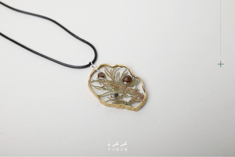 مصنوعة يدويا من الريزن يتوسطها نبات العرعر وثمر القحقح ، مدموجةً بأحرفٍ من خط المسُند الجنوبي القديم .